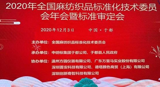 2020123, 全國(guó)麻紡織品標(biāo)準(zhǔn)化技術(shù)委員會(huì)第四屆第四次委員代表大會(huì)在江西·于都順利召開(kāi)。本屆大會(huì)由全國(guó)麻紡織品標(biāo)準(zhǔn)化技術(shù)委員會(huì)主辦,中紡標(biāo)集團(tuán)于都公司、于都縣人民政府承辦,溫州方圓儀器有限公司、廣東萬(wàn)里馬實(shí)業(yè)股份有限公司、深圳菩安科技有限公司、德塔顏色商貿(mào)(上海)有限公司、深圳創(chuàng)新奇智科技有限公司協(xié)辦。